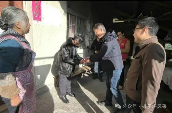 滕磊教授与得妥镇椒子坪村村干部及统计学院驻村干部李胜老师进行入户走访,与脱贫户进行亲切交谈,详细了解他们的生产生活、身体状况、就业上学、家庭收入等情况,耐心倾听了农户当前存在的困难和诉求,为他们出主意、想办法,并向两户监测户村民送上慰问金。
