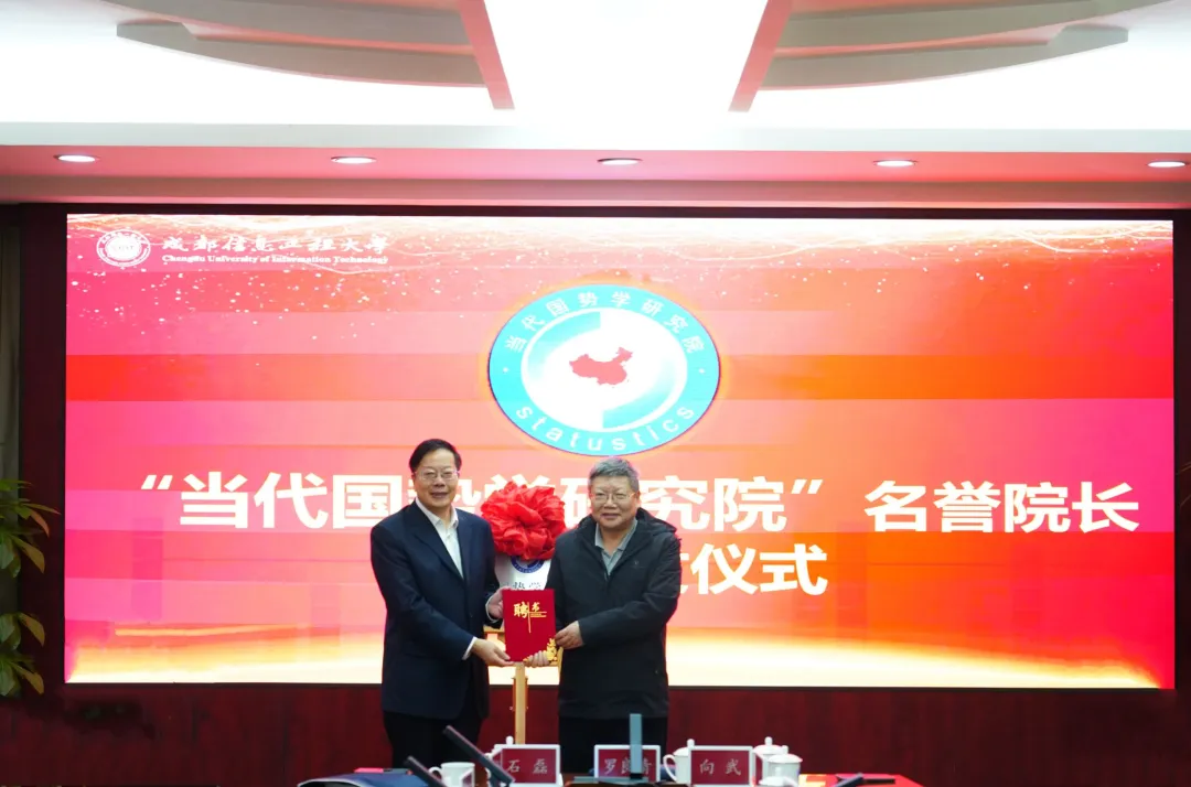 许宪春和肖红叶为“当代国势学研究院”成立揭牌,沈火明为罗良清教授颁发聘书。