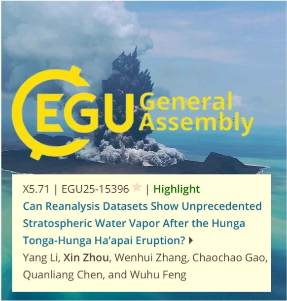 4月28日-5月2日,2025年欧洲地球科学联盟年会(EGU General Assembly 2025,EGU25)在奥地利维也纳举行。我校大气科学学院关于汤加火山喷发后平流层水汽变化的研究成果,入选2025年年会亮点研究“EGU highlight”,是EGU25 Volcano-climate impacts and the stratospheric aerosol layer专题唯一入选亮点研究的成果。