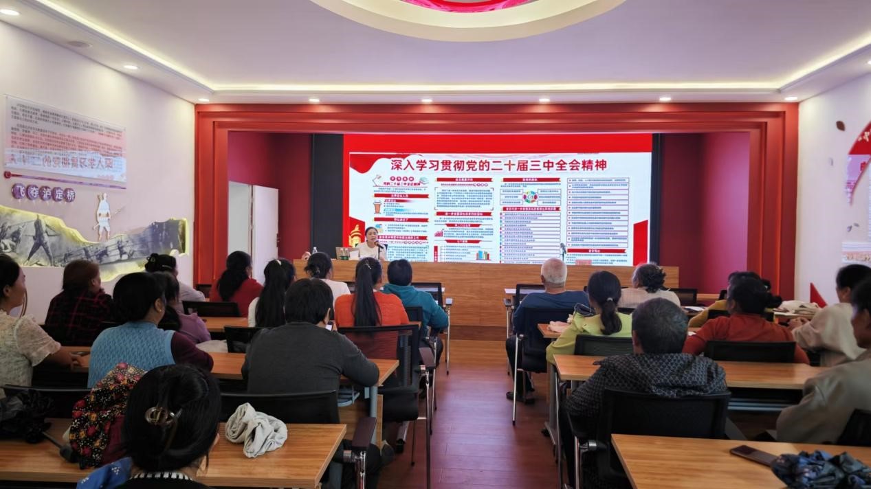 调研组一行在杵坭村村委会旁参加了我校黄萍教授、曾利副教授讲授的乡村文化旅游专业技能培训课。两位老师向村民代表讲解了党的二十届三中全会会议精神解读、乡村旅游发展规划与前景、农家乐与民宿的发展设计等内容。