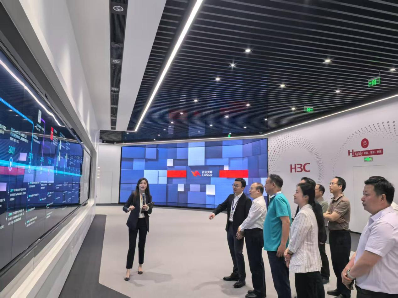 419日,何建新一行到访新华三集团杭州总部,在新华三集团高级副总裁首席信息官谌平的陪同下,参观了企业展厅,详细了解新华三在数字经济、人工智能、5G通信、智能运维等领域的创新成果及行业应用。作为数字化解决方案的领军企业,新华三集团展示了其在智慧城市、工业互联网等领域的标杆项目,双方就前沿技术发展与高校学科建设适配性展开深入探讨。