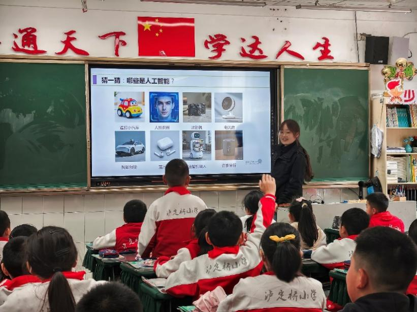 支教团为不同年级同学量身定制分层教学方案,由浅入深讲授人工智能知识:以智能电视、语音音箱等日常智能设备为切入点,搭配自动手术机器人、无人仓分拣等趣味短片,用直观方式讲解AI基础概念,帮助学生建立初步认知;设计“猜一猜哪些是人工智能”互动环节,通过人脸识别、智能驾驶、遥控小汽车等实例对比,引导学生辨析“自动”与“智能”的核心区别;聚焦手术机器人、智能驾驶等前沿应用,延伸探讨AI伦理议题,激发学生深度思考科技与社会的关系。