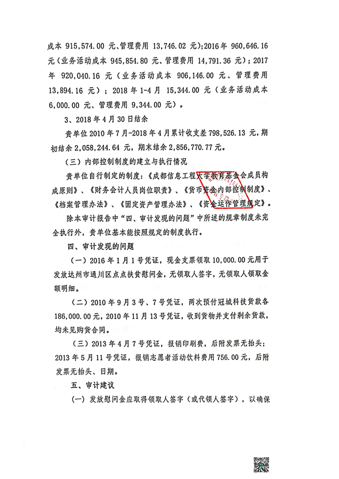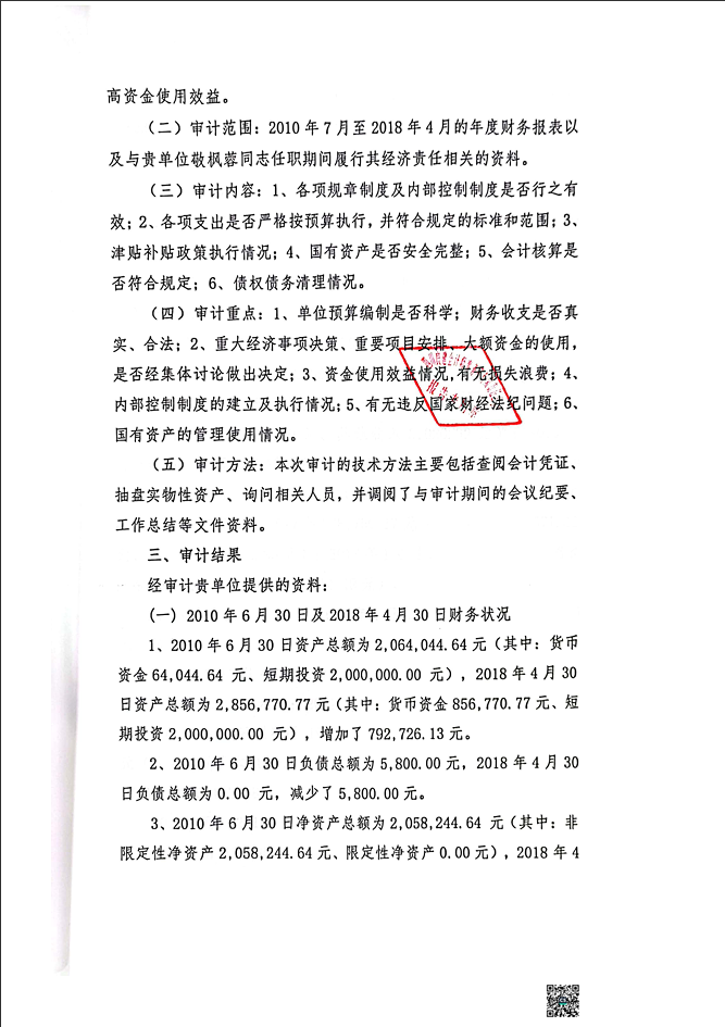 基金会2018年经济责任审计报告