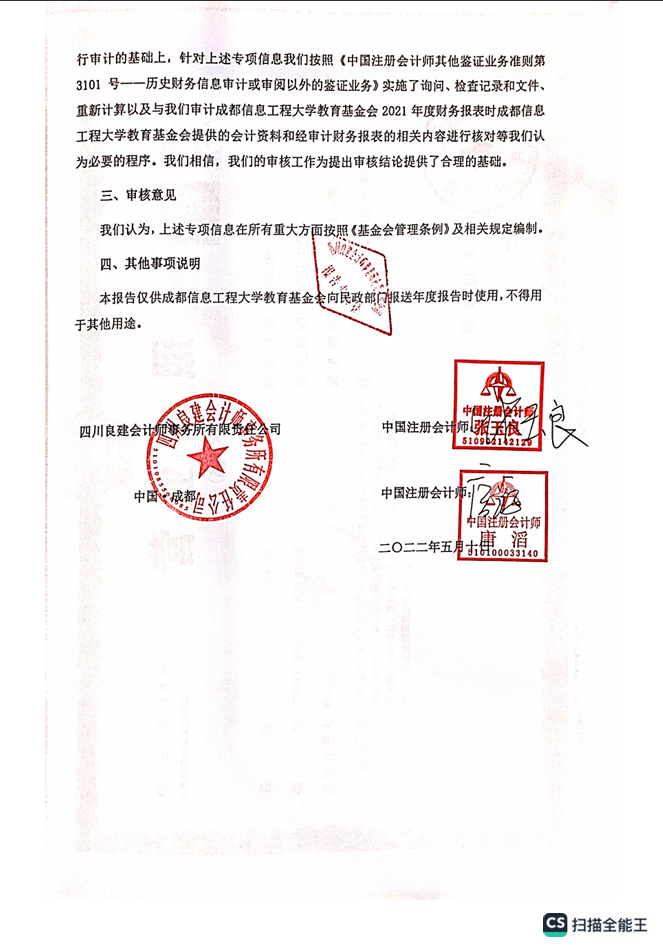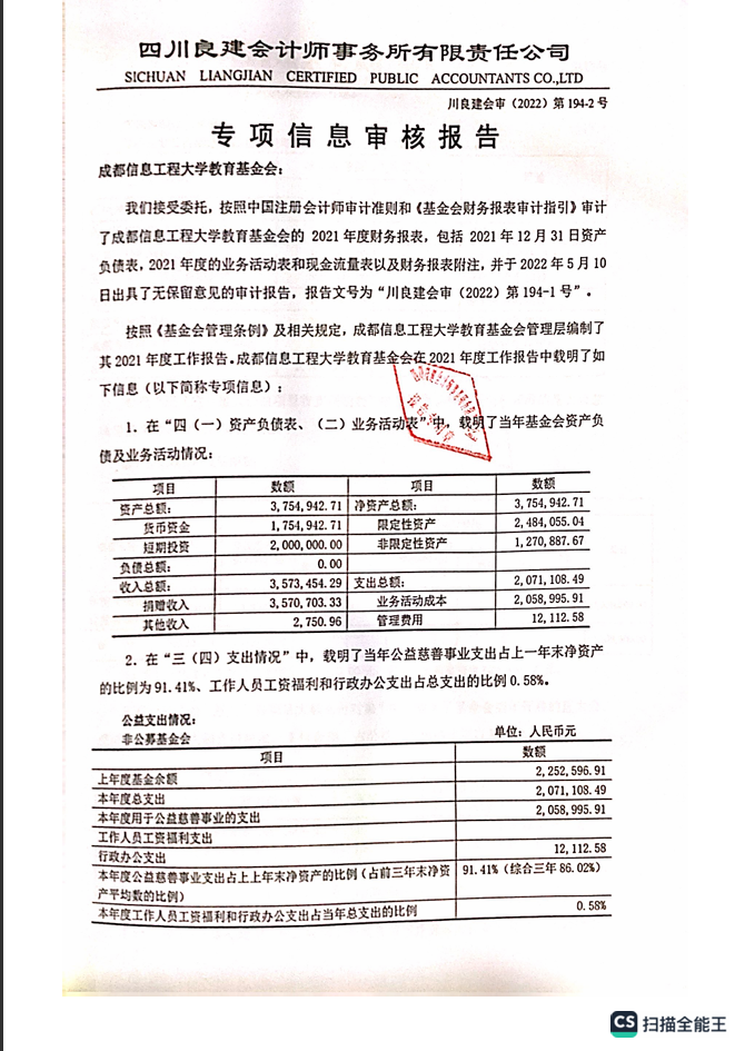 基金会2021年专项信息审核报告