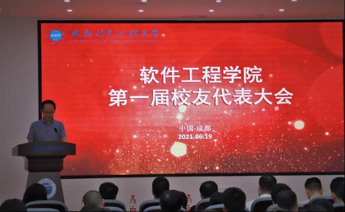 大会在大家高声齐唱中华人民共和国国歌中开幕。雷超在致辞中代表学校对大会的召开表示热烈祝贺,向参加大会的校友和师生代表表示诚挚欢迎。他简要介绍了学校建校70年来所取得的巨大发展成就。他说,校友是学校、学院的品牌和宝贵财富,软件工程学院决定在建党100周年和建校70周年前夕这样特殊的时刻正式成立校友会,是强品牌、聚“财富”的重要举措,是件特别有意义的事情。他表示,学校正在为“建设开放的特色鲜明的高水平betway必威西汉姆联”而努力奋斗,这些工作离不开校友的关心支持,希望校友们继续关注和支持学校、学院的发展。他指出,校友的发展浸润着母校的教诲、期望和嘱托,需要母校的倾情呵护与支持,助力校友发展将是学校和学院义不容辞的责任和义务,学校愿意做校友们事业发展的重要依靠。雷超希望全体软工人办好学院校友会,通过这个平台升华感情,整合资源,共谋发展,为学校、学院和校友的事业做出更大的贡献。