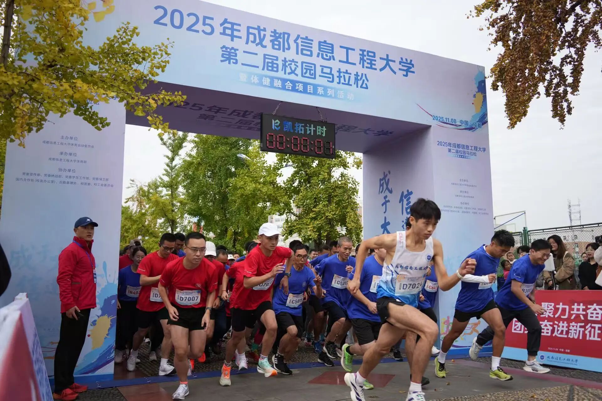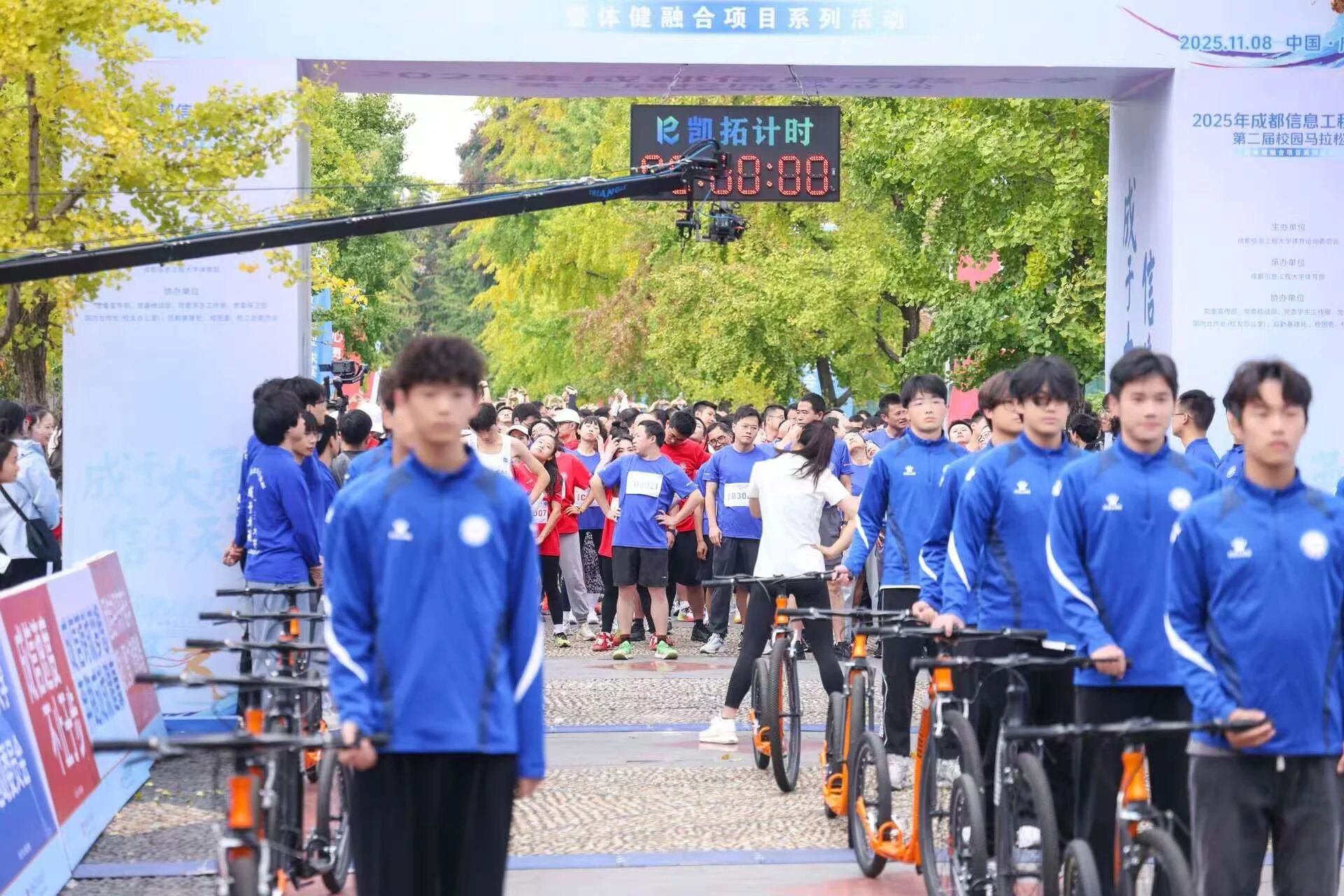 11月8日,学校第二届校园马拉松暨体健融合系列活动在航空港校区拉开帷幕,1200 余名师生校友踊跃参与。他们以奔跑的姿态丈量校园,展现青春风采,重拾少年意气。学校校长何建新、党委副书记杨奇才、副校长舒红平,校友办主任张斌兵、党政办公室主任李乐中、校工会专职副主席周波、党委学生工作部部长丁恒康、校团委书记刘琰琰、体育部主任程艺等领导同志共同鸣笛发令,宣告第二届校园马拉松正式开跑。